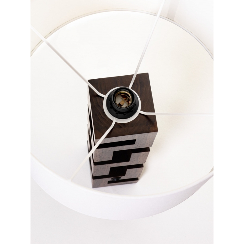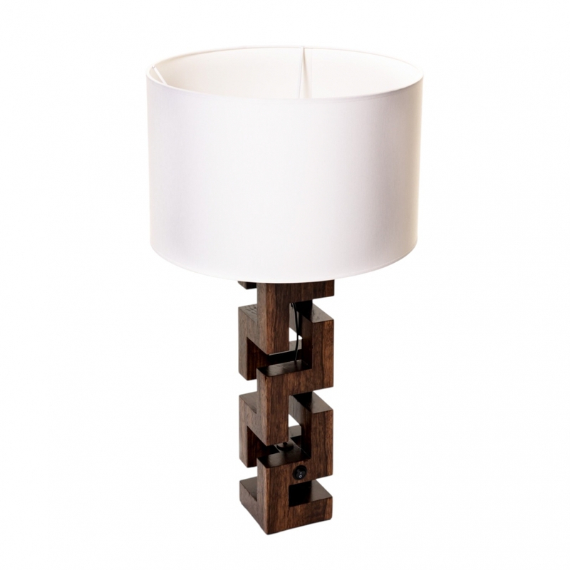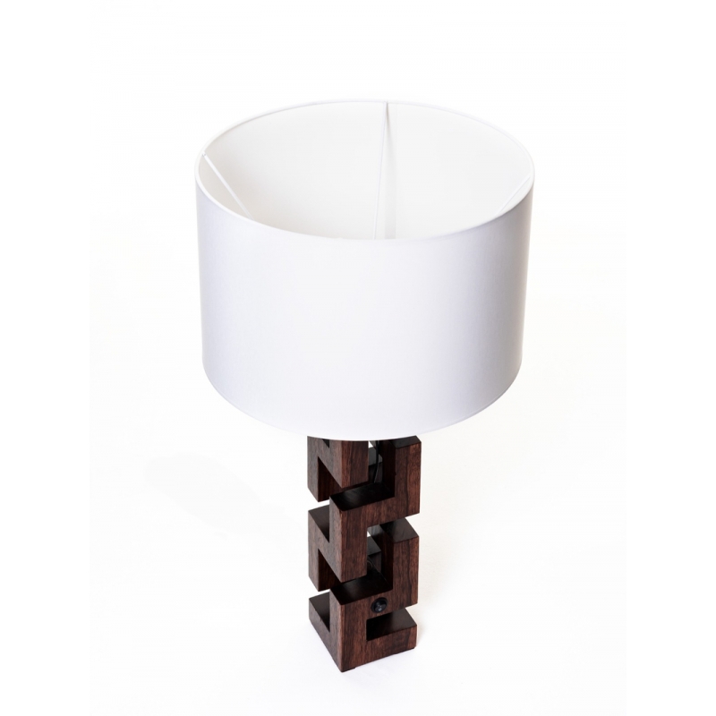 Стойка светильника вырезана спиральным рисунком из массива офрама. Спиральный паттерн создает иллюзию изменения формы в зависимости от угла зрения. Когда бы Вы не посмотрели на нее, она всегда будет разной. Основные цвета породы: песочный, серый, коричневый, черный, золотистый. Стойка меняет цвет в зависимости от освещения.