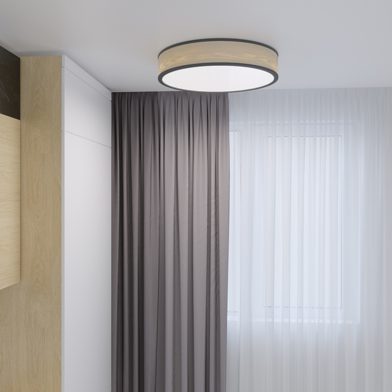Описание модели: Оливковый ясень, Цвет канта: белый, черный, серый. Вес 4 кг Высота 11 см Диаметр Ø 60 см Источник света 54 Вт, 3600 Лм Материал изделия МДФ, шпон ясеня, шпон ореха Площадь освещения 9-12 м Покрытие воск, масло, эмаль Цвет изделия белый, серый, черный, орех, ясень