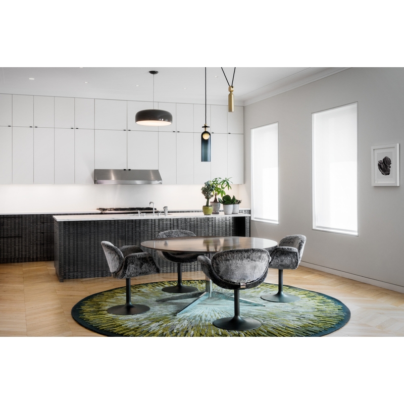 Ковер можно выполнить из акрила или из натуральной шерсти в разных размерах (для уточнения цены нужного вам размера обратитесь к менеджеру). Ковер круглой формы с эффектным радиальным рисунком, напоминающим солнечные лучи или вспышку света. Золотистые, серебристые и светло-серые оттенки создают ощущение сияния и энергии, а тёмная окантовка подчёркивает глубину композиции. Такой ковер станет центральным элементом интерьера — он добавит пространству динамику, свет и утончённую роскошь.