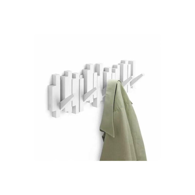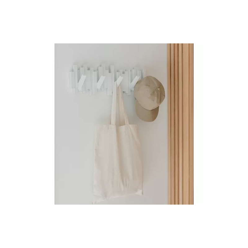 Настенная вешалка Sticks в новом белом цвете. Выполнена из литого пластика с 5-ю откидывающимися крючками. Когда вешалка не используется, то превращается в декор для стен, нужно просто сложить крючки внутрь.